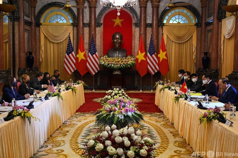 ハリス氏はベトナムのグエン・スアン・フック(Nguyen Xuan Phuc)国家主席(大統領)との会談で、中国の南シナ海における「いじめ行為や海洋での行き過ぎた領有権主張」に対抗し続けていくと明言。「われわれは率直に言って、中国に対し国連海洋法条約(UNCLOS)を順守するよう圧力を強めていく方策を見いだす必要がある」と述べた。