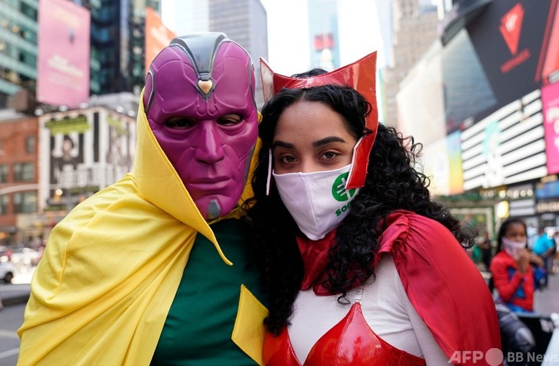 【8月26日 AFP】米ニューヨークのタイムズスクエア(Times Square)で25日、米マーベル(Marvel)作品「アベンジャーズ(The Avengers)」に登場するキャラクターらが、新型コロナウイルスワクチンの接種を呼び掛けた。