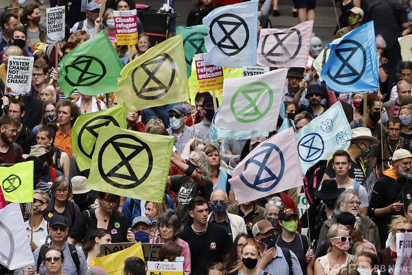 絶滅への反逆は、2週間にわたって行われる予定の抗議活動を23日から開始。気候変動に対して至急行動を起こすよう、各国政府に呼び掛けるとしている。(c)AFP