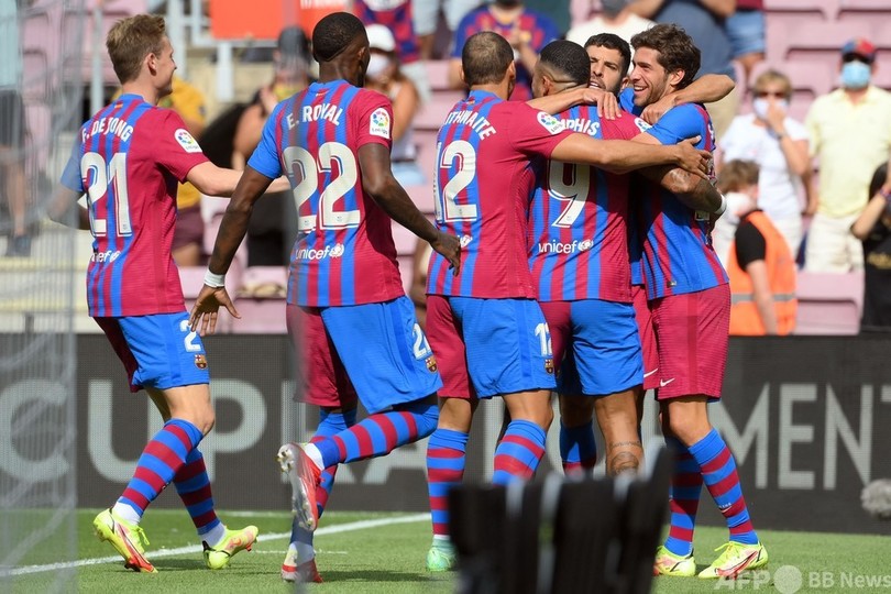 リオネル・メッシ(Lionel Messi)がいないことに慣れつつあるバルセロナは、ジョルディ・アルバ(Jordi Alba)のクロスにセルジ・ロベルト(Sergi Roberto Carnicer)が合わせ、キックオフから2分で先制した。