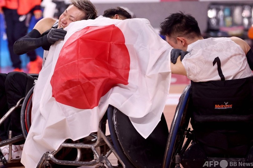車いすラグビー3位決定戦では、日本が3連覇を目指したオーストラリアを60-52で破り、2大会連続の銅メダルを獲得した。(c)AFPBB News
