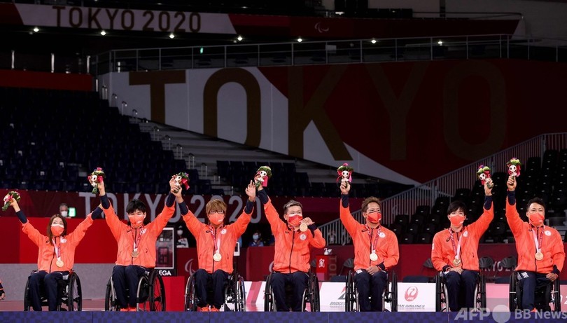 車いすラグビー3位決定戦では、日本が3連覇を目指したオーストラリアを60-52で破り、2大会連続の銅メダルを獲得した。(c)AFPBB News