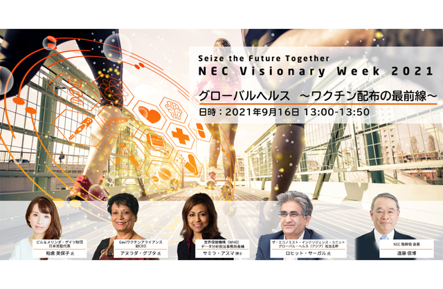 ビル&メリンダ・ゲイツ財団日本常駐代表の柏倉氏、Gaviワクチンアライアンス副CEOのグプタ氏、WHOのデータ分析担当で事務局長補を務めるサミラ博士、そしてNECの遠藤ら、最前線で奮闘するリーダーたちから、現状の課題や将来のパンデミックへの対応等が発信されることになるだろう。
