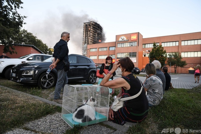【8月30日 AFP】イタリア北部ミラノ(Milan)南郊にある20階建てマンションで29日、火災が発生し、建物が激しい炎と煙に包まれた。消防車と救急車、合わせて数十台が出動し、住民の安全確保を急いだ。