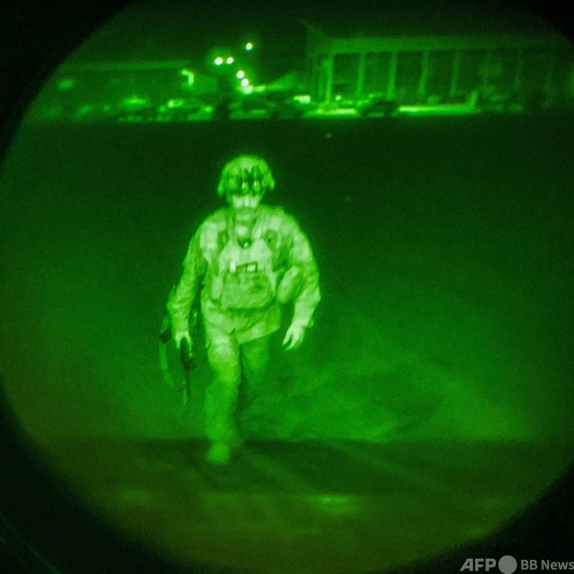 【9月1日 AFP】米軍のアフガニスタン撤退で、同国を去る最後の米兵の姿を捉えた写真が公開された。