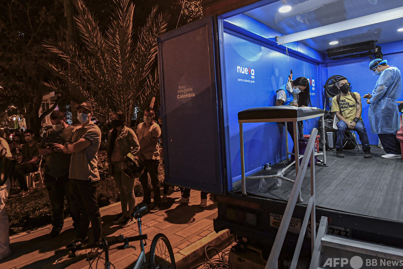WHOによると、ミュー株の有病率は世界では減少して0.1%未満となっているが、コロンビアでは39%となっている。(c)AFP