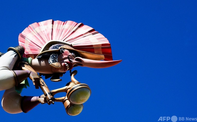 ファリャス期間中、市内には「ニノット(Ninot)」と呼ばれる張り子の像や山車が展示される。これらは最終日に燃やされる。(c)AFP