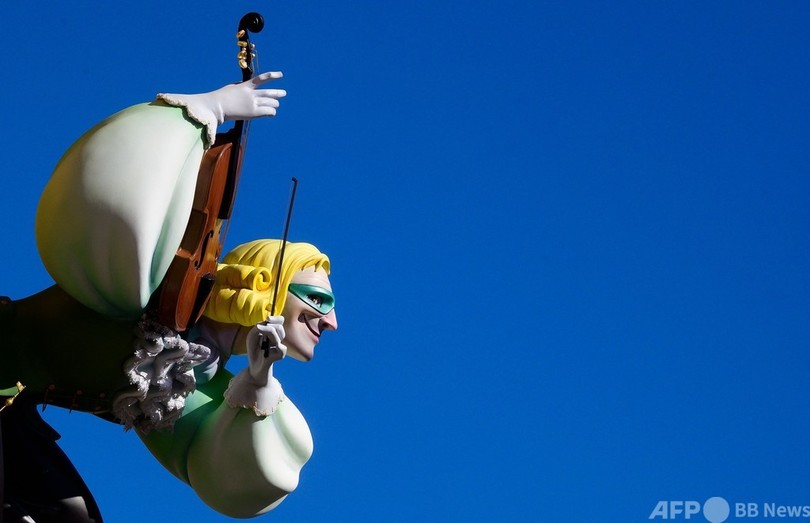 ファリャス期間中、市内には「ニノット(Ninot)」と呼ばれる張り子の像や山車が展示される。これらは最終日に燃やされる。(c)AFP