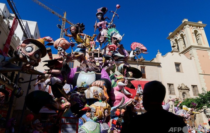 ファリャス期間中、市内には「ニノット(Ninot)」と呼ばれる張り子の像や山車が展示される。これらは最終日に燃やされる。(c)AFP