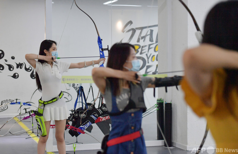 長春市内のアーチェリー館では夏休み期間中、カップルや若い女性らが多く訪れた。アームガード(小手当て)やチェストガード(胸部プロテクター)、クィーバー(矢入れ)などを装着した本格的な出で立ちで、的をめがけて弓を放った。