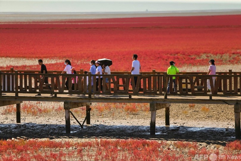 ニュース ライフ 一面真っ赤の湿原「レッドビーチ」 中国 2021年9月5日 8:30 発信地:盤錦/中国 [ 中国 中国・台湾 ] このニュースをシェア ‹ › ❮ 2/7 ❯ 中国北東部・遼寧省の盤錦にある「レッドビーチ」を訪れた人々(2021年8月27日撮影)。(c)STR / AFP 画像作成中 ! 【9月5日 AFP】中国東北部、遼寧(Liaoning)省の盤錦(Panjin)にある紅海灘風景区では、赤い湿原が広がっている。通称「レッドビーチ」と呼ばれる同区の赤色は、マツナという植物によるもの。(c)AFP ライフ 一覧へ> メディア・報道関係・法人の方向け 写真・動画 購入のお問合せ>