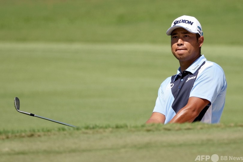 松山は、通算1オーバーで26位タイに浮上している。(c)AFP