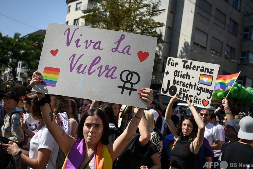 スイスでLGBTIQのパレード 同性婚の合法化訴えるケーキも登場
