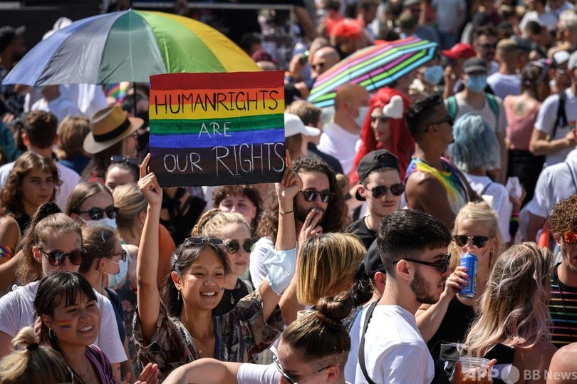 スイスでLGBTIQのパレード 同性婚の合法化訴えるケーキも登場