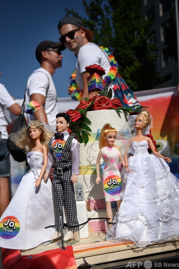 スイスでLGBTIQのパレード 同性婚の合法化訴えるケーキも登場