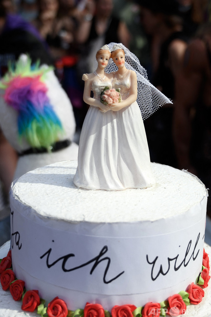 スイスでLGBTIQのパレード 同性婚の合法化訴えるケーキも登場