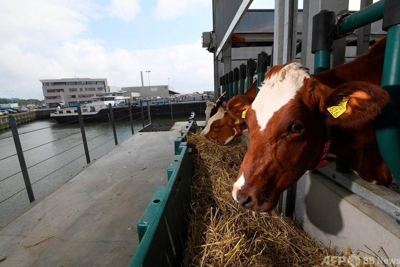 【9月19日 AFP】オランダ・ロッテルダム(Rotterdam)の港には、クレーンやコンテナの他、一つ見慣れないものがある──世界初とされる水上の酪農場だ。