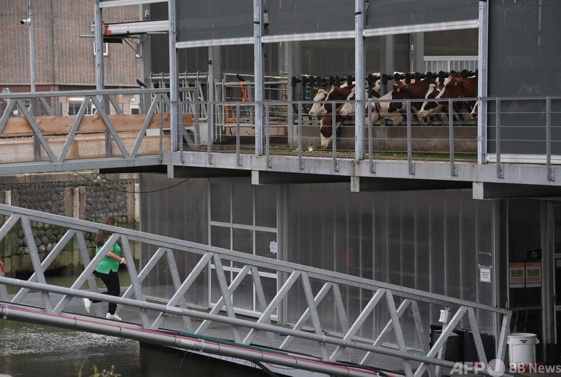 【9月19日 AFP】オランダ・ロッテルダム(Rotterdam)の港には、クレーンやコンテナの他、一つ見慣れないものがある──世界初とされる水上の酪農場だ。
