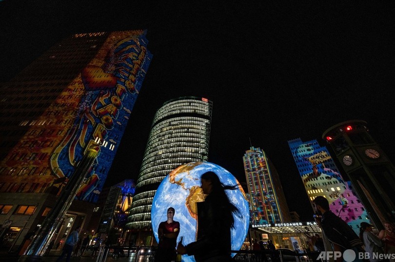 【今日の1枚】地球を見守る高層ビル、ベルリンの光の祭典