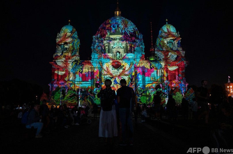 【今日の1枚】地球を見守る高層ビル、ベルリンの光の祭典