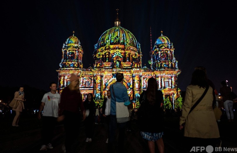 【今日の1枚】地球を見守る高層ビル、ベルリンの光の祭典