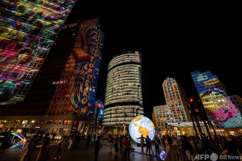 【今日の1枚】地球を見守る高層ビル、ベルリンの光の祭典