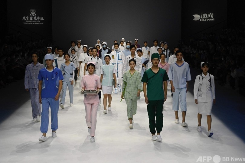 【9月12日 AFP】中国北京で開催された中国ファッションウィーク(China Fashion Week)で、新型コロナウイルスとの闘いを描いた同国の連続テレビドラマ「最美逆行者(Heroes in Harm's Way)」のコレクションが発表された。防護服姿や医師の格好をしたモデルがランウェイに登場し、踊ったりした。