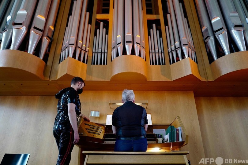 【9月22日 AFP】ドイツ・ベルリンの教会で開かれたリサイタルで、ピアニストとフルート奏者がノルウェーの作曲家グリーグ(Edvard Grieg)の曲を演奏している。