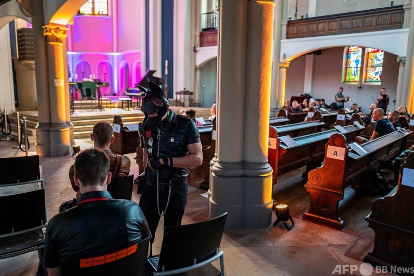この夜会を企画したタイロン・ロントガグナー(Tyrone Rontgagner)さんは、チャップス(革製のズボンカバー)からサスペンダー、マスク、ベストまであらゆる革製品を愛するクィア(性的少数者)コミュニティーの人々が100人ほど教会に集まったことを、とても誇りに思っている。