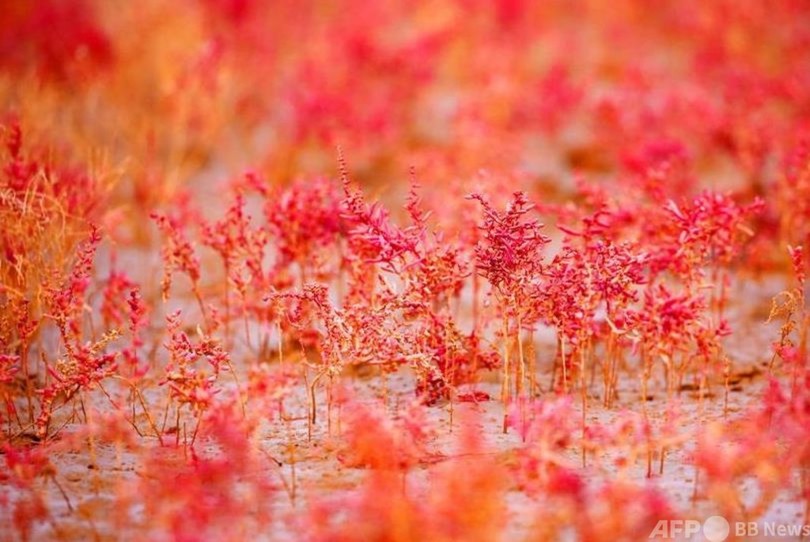 中国では「黄須菜」と呼ばれるマツナは、その色が春から秋にかけて緑から赤に変わります。旧暦8月に入った今シーズン、最も赤く、眺めが最高だといわれています。(c)CGTN Japanese/AFPBB News