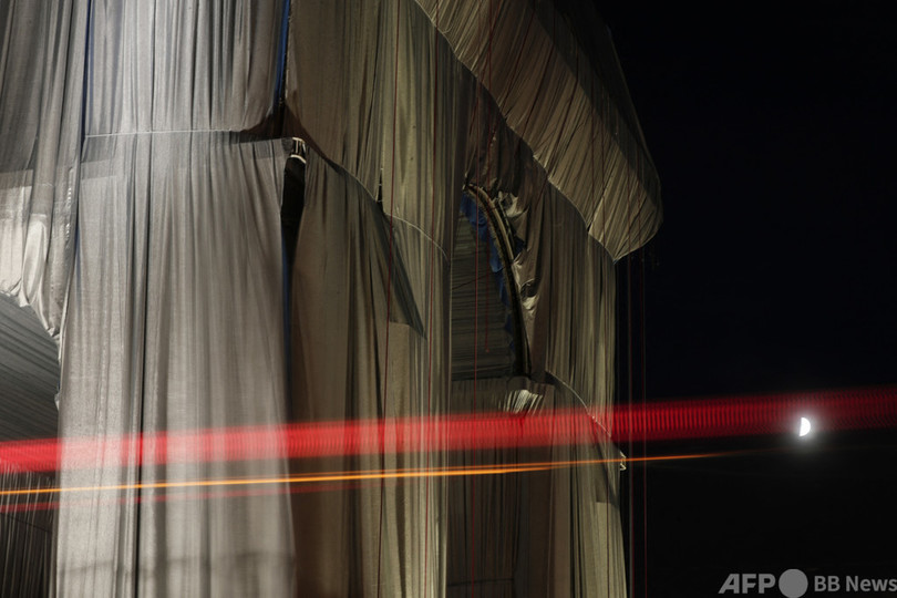 【今日の1枚】夕闇に輝く 布で包まれた凱旋門、パリ