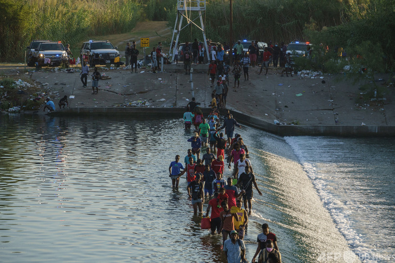 不法移民らはカリブ海(Caribbean Sea)の島国ハイチの出身者が中心で、リオグランデ(Rio Grande)川の上に架かるデルリオ国際橋(Del Rio International Bridge)の下の、税関・国境警備局(CBP)が管理する区域に押し込められている。