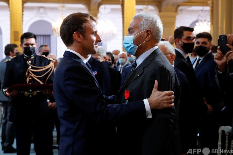 マクロン大統領は、アルキとその親族ら約300人を招いてエリゼ宮(Elysee Palace、大統領府)で式典を開き、アルキへの感謝を表明。さらに、フランスは「アルキやその妻子に対する義務を怠った」と認め、「私は許しを乞う。われわれは忘れない」と述べた。(c)AFP