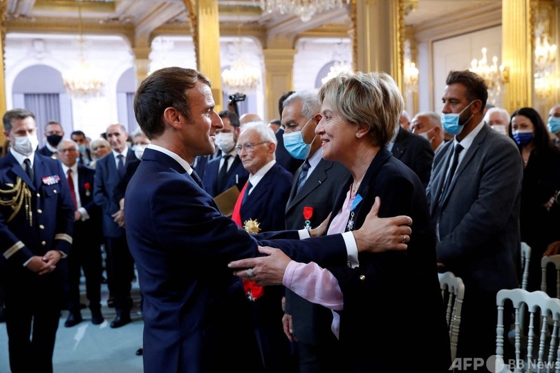 マクロン大統領は、アルキとその親族ら約300人を招いてエリゼ宮(Elysee Palace、大統領府)で式典を開き、アルキへの感謝を表明。さらに、フランスは「アルキやその妻子に対する義務を怠った」と認め、「私は許しを乞う。われわれは忘れない」と述べた。(c)AFP