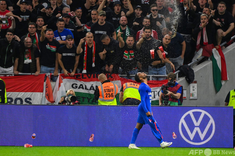 また、人種差別に反対するためにイングランドの選手たちが試合前にピッチに膝をつくと、プスカシュ・アレーナ(Puskas Arena)には耳をつんざくようなブーイングが飛び、敵意に満ちたホームの観客からはコップや発煙筒といったさまざまなものが投げ入れられた。