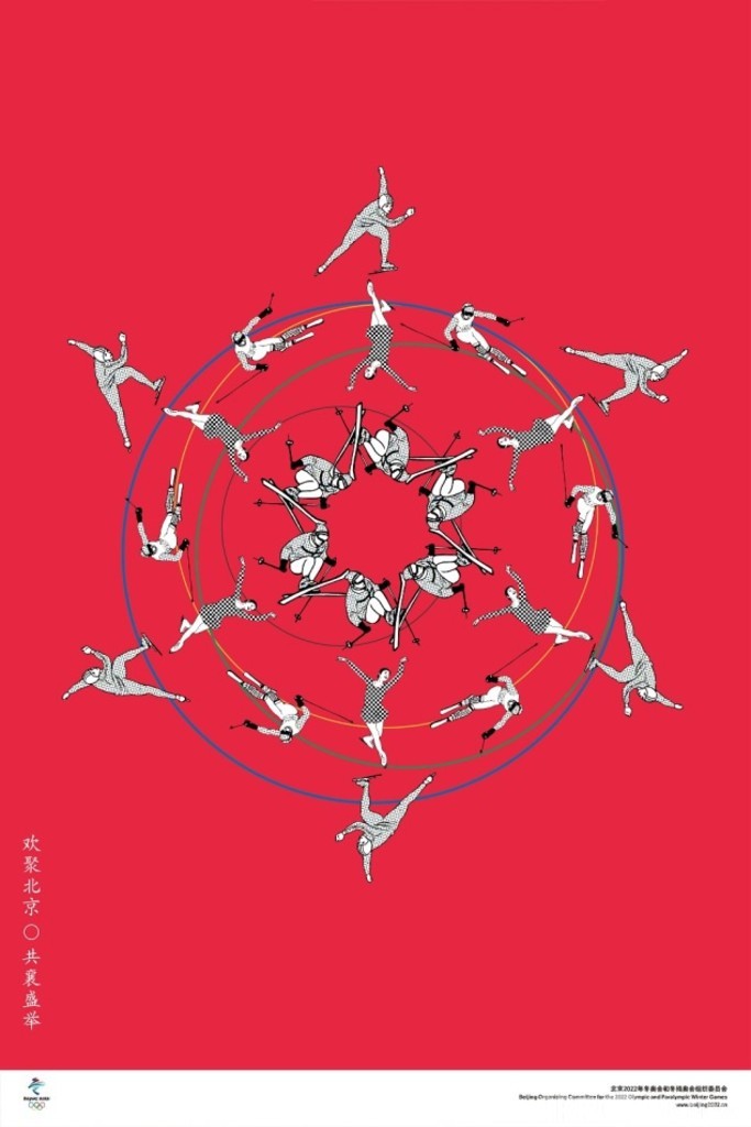 北京冬季オリンピック組織委員会は昨年の北京国際デザインウイークで全国に向けて、オンラインとオフラインの両方式でPR用ポスターのデザインを公募すると発表しました。応募したデザイン会社は100社余りで、さらに専門のデザイナーや全国の芸術デザイン大学の教師や学生からの作品を含めて計1565点(セット)が寄せられました。選考を重ねた結果、作品11点(セット)が北京2022冬季五輪・パラリンピックのPR用ポスターに指定されました。