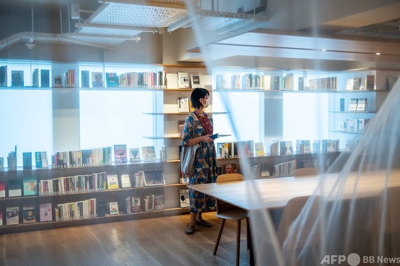 ライブラリーは、村上氏が50年ほど前に在籍していたキャンパスにある教室棟を造り替えたものだ。村上氏は学生運動が盛んだった当時、本を読んだり授業をサボったりしたことを振り返った。(c)AFP