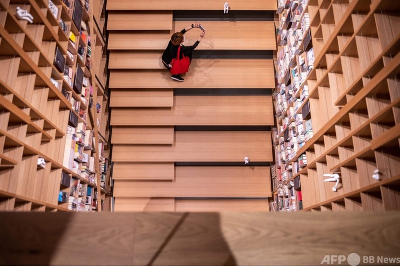 ライブラリーは、村上氏が50年ほど前に在籍していたキャンパスにある教室棟を造り替えたものだ。村上氏は学生運動が盛んだった当時、本を読んだり授業をサボったりしたことを振り返った。(c)AFP