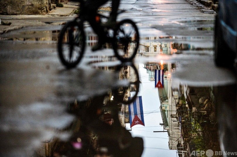 【9月30日 AFP】キューバ・マヤベケ(Mayabeque)州のサンタクルスデルノルテ(Santa Cruz del Norte)で、エルネスト・ゲバラ(Ernesto Guevara)火力発電所の近くを進む自転車。(c)AFP