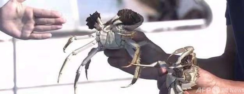 今年の陽澄湖産上海ガニの価格は前年並みで、雄雌一対で大きさによって100~300元(約1700~5000円)となります。(c)CGTN Japanese/AFPBB News