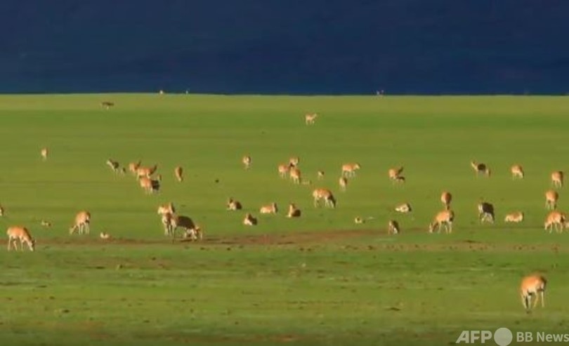 国家林業草原局は8月、1980年代から90年代にかけては7万頭未満だったチベットカモシカの個体数は、過去数年間の生態保護や密猟対策の強化に伴い、現在は約30万頭にまで増加したと発表しました。チベットカモシカの保護レベルも絶滅危惧種から1段階緩和された準絶滅危惧種に変更されました。(c)CGTN Japanese/AFPBB News