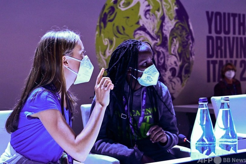 3日間にわたり開かれる「ユース・フォー・クライメート」では、世界各国から約400人の若い活動家が集結。11月に英グラスゴーで開催されるCOP26を前に、今週末に開かれる閣僚級会合に提出する共同宣言を準備する予定だ。(c)AFP