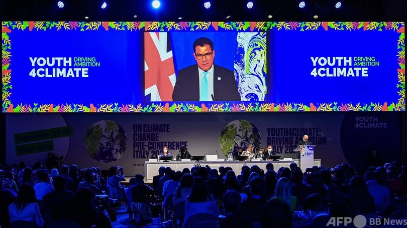 3日間にわたり開かれる「ユース・フォー・クライメート」では、世界各国から約400人の若い活動家が集結。11月に英グラスゴーで開催されるCOP26を前に、今週末に開かれる閣僚級会合に提出する共同宣言を準備する予定だ。(c)AFP