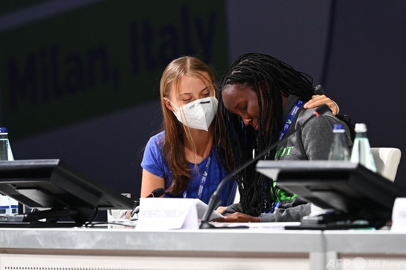 11月の気候変動枠組み条約第26回締約国会議(COP26)を前にイタリア北部ミラノ(Milan)で開催されたイベント「ユース・フォー・クライメート(Youth4Climate)」で演説したトゥンベリさんは、各国政府が十分な温室効果ガス削減と資金提供の誓約をしていないのにもかかわらず、「恥を知ることなく自画自賛している」と非難。各国首脳の言葉には行動が伴っていないと指摘した。
