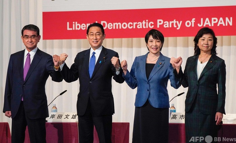 今回立候補したのは、河野太郎(Taro Kono)行政改革担当相、岸田氏、高市早苗(Sanae Takaichi)前総務相、野田聖子(Seiko Noda)幹事長代行。有力な女性政治家が少ない日本では珍しく男女2人ずつの出馬となった。