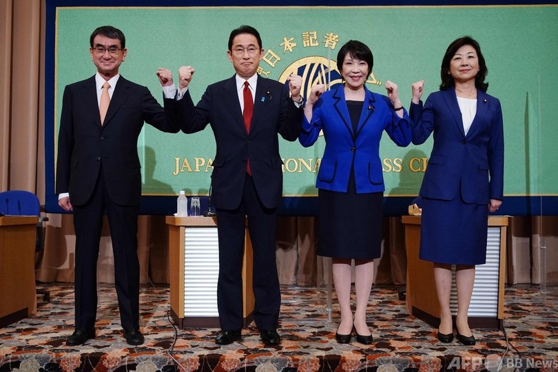 今回立候補したのは、河野太郎(Taro Kono)行政改革担当相、岸田氏、高市早苗(Sanae Takaichi)前総務相、野田聖子(Seiko Noda)幹事長代行。有力な女性政治家が少ない日本では珍しく男女2人ずつの出馬となった。