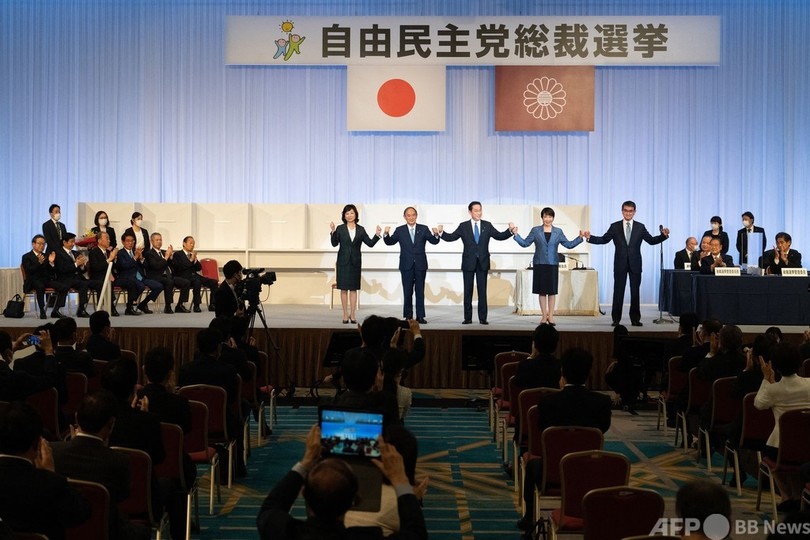 今回立候補したのは、河野太郎(Taro Kono)行政改革担当相、岸田氏、高市早苗(Sanae Takaichi)前総務相、野田聖子(Seiko Noda)幹事長代行。有力な女性政治家が少ない日本では珍しく男女2人ずつの出馬となった。