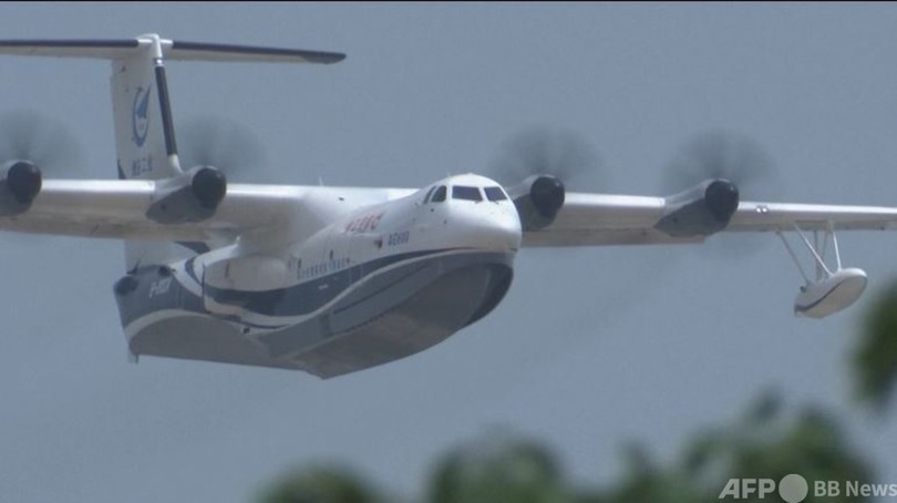 2017年12月、AG600は広東省珠海で初の陸上飛行、2020年7月、山東省の青島付近の海域で初の海上飛行を実現しました。今年3月にはAG600の消火システム検証のための初めてのテスト飛行が行われました。(c)CGTN Japanese/AFPBB News
