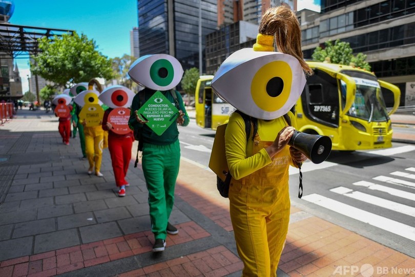 ニュース 社会 見ているよ…コロンビアで交通安全呼び掛け 2021年9月30日 16:43 発信地:ボゴタ/コロンビア [ コロンビア 中南米 ] このニュースをシェア ‹ › ❮ 1/3 ❯ コロンビアの首都ボゴタで、信号機をモチーフにしたコスチュームで大通りをパトロールする交通局の職員ら(2021年9月29日撮影)。(c)Juan BARRETO / AFP 画像作成中 ! 【9月30日 AFP】コロンビアの首都ボゴタで29日、交通安全の啓発活動が行われた。交通局の職員らが信号機をモチーフにしたコスチューム姿で、市内の大通りをパトロールした。(c)AFP 社会 一覧へ> メディア・報道関係・法人の方向け 写真・動画 購入のお問合せ>