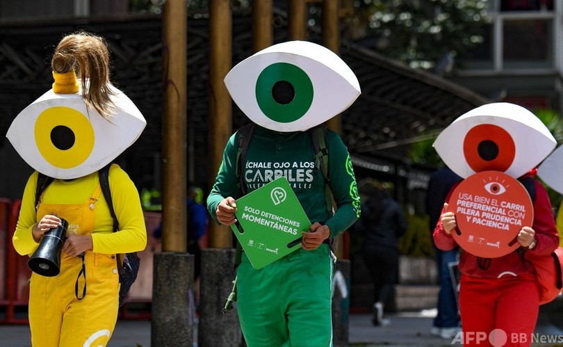 ニュース 社会 見ているよ…コロンビアで交通安全呼び掛け 2021年9月30日 16:43 発信地:ボゴタ/コロンビア [ コロンビア 中南米 ] このニュースをシェア ‹ › ❮ 3/3 ❯ コロンビアの首都ボゴタで、信号機をモチーフにしたコスチュームで大通りをパトロールする交通局の職員ら(2021年9月29日撮影)。(c)Juan BARRETO / AFP 画像作成中 ! 【9月30日 AFP】コロンビアの首都ボゴタで29日、交通安全の啓発活動が行われた。交通局の職員らが信号機をモチーフにしたコスチューム姿で、市内の大通りをパトロールした。(c)AFP 社会 一覧へ> メディア・報道関係・法人の方向け 写真・動画 購入のお問合せ>